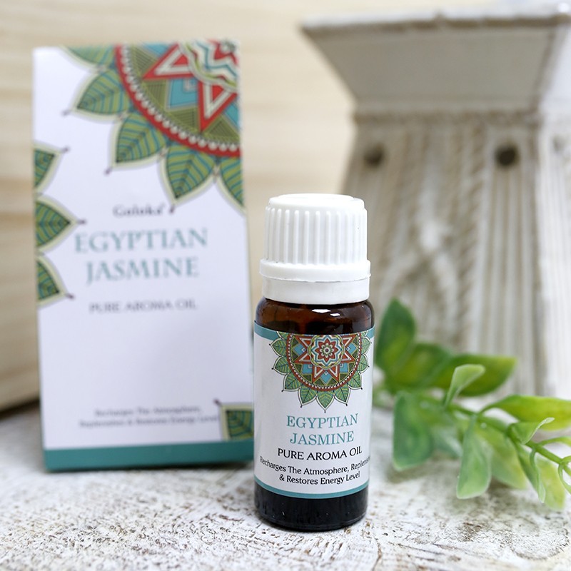 Aceites Goloka con aroma a jazmín. Fragancia suave y floral. Contiene 10ml cada una, presentadas en estuche. Uso exclusivo para difusores de aroma y quemadores de aceite, no siendo posible utilización tópica.
