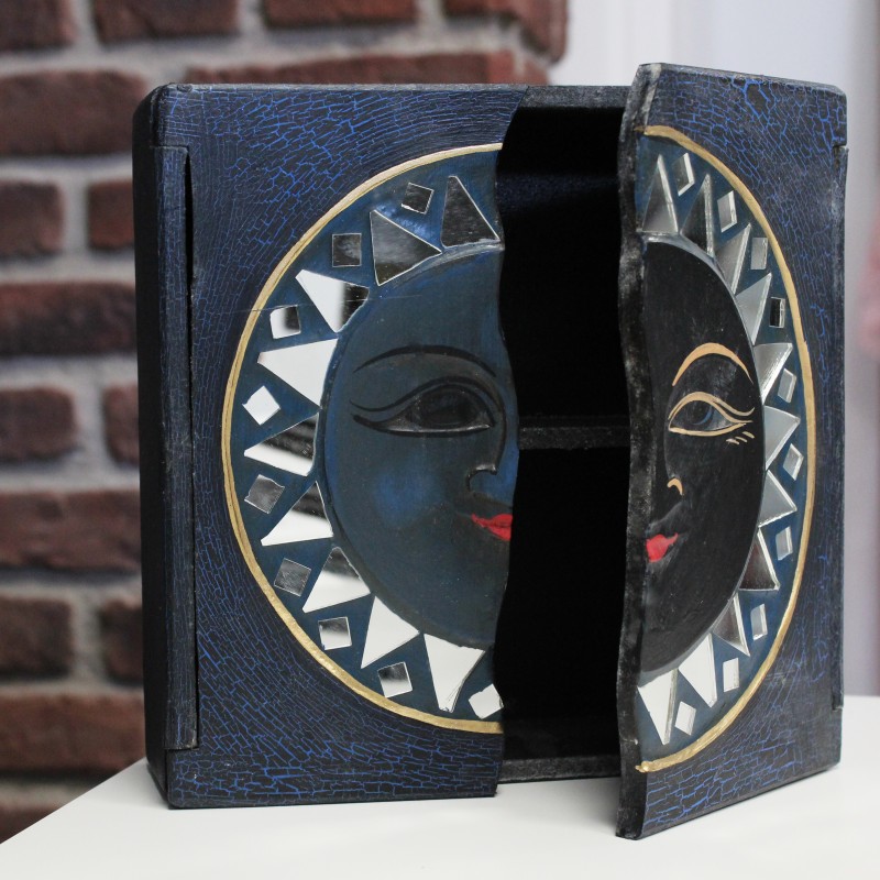 Caja de Madera diseño Sol y Luna decorativas