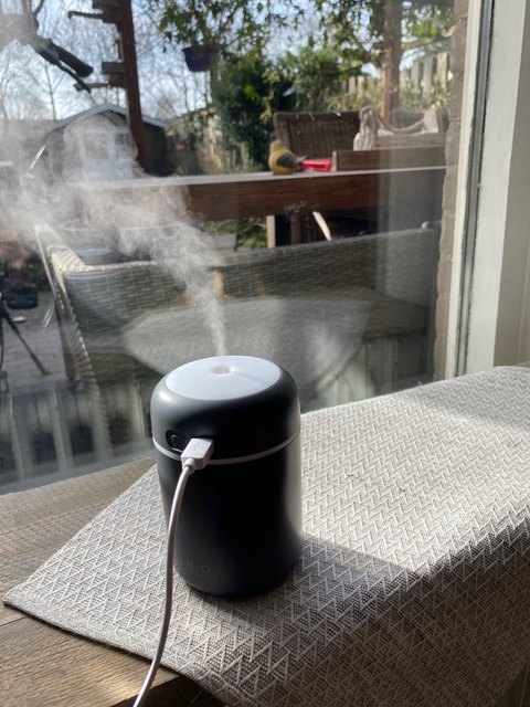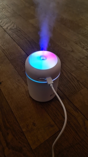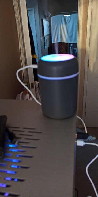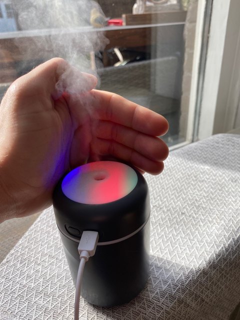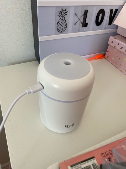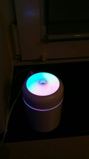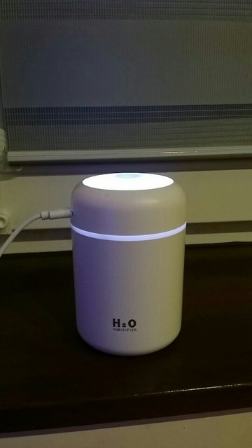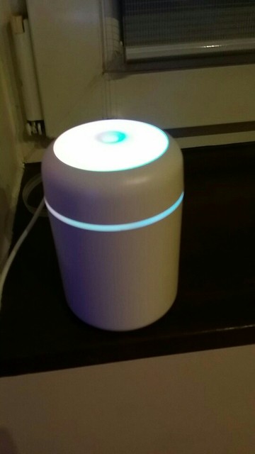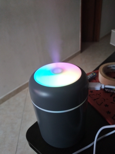 Mini humidificador de aire difusor de aceite aromático. Tanque de agua de 300ml. Con luz nocturna colorida.