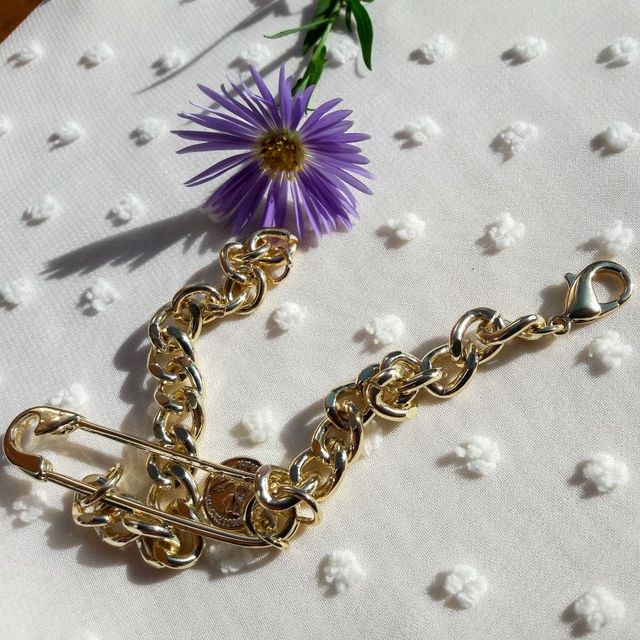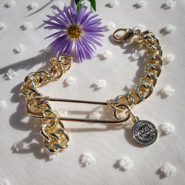 ¡Pulsera de gran tejido con un pin y una moneda! El tamaño de la pulsera es ajustable y adecuado para cualquier muñeca ¿El brazalete está hecho de aleación de zinc? Es ejecutado y cualitativamente bien sin defectos y arañazos Se ve muy hermoso. La entrega se llevó a 25 días ¿El número de la pista fue rastreado? Recomiendo comprar