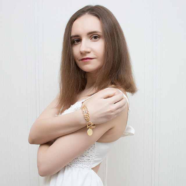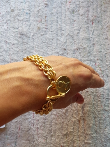 El brazalete se compone de 3 capas de la cadena ¿El material es de aleación de zinc? Todos los enlaces son igualmente de forma uniforme y pintado No hay rastros en la piel Cierre togl así que puedes zip con facilidad Cerca de la cerradura es una pequeña decoración en la forma de una moneda En mi muñeca es un poco bolshevat-circunferencia 21,5 cm ¿No voy a caer de mi mano, pero voy a ver? En la mano se siente bien y si se cae, será notado La pulsera en una bolsa Entrega a Belarús de 1,5 meses ¿La pista no rastreado?